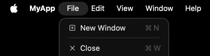 The same code compiled as a Mac Catalyst app will have New Window in File, along with Close.