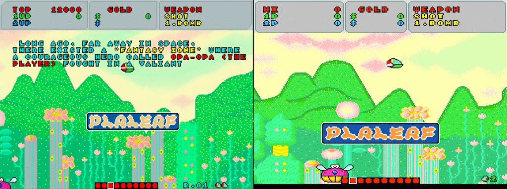 To launch the Fantasy Zone “near-arcade” version, hold down SELECT on the controller while starting the game.