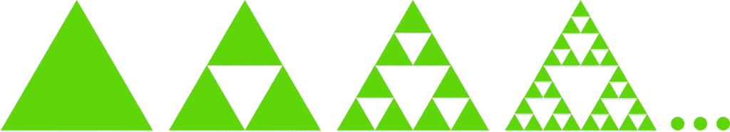 The Sierpiński triangle is what is known as a fractal – a geometric shape that shows structure at arbitrarily small scale, often with a similar appearance as the scale changes. The Sierpiński triangle is basically an equilateral triangle, subdivided recursively into smaller equilateral triangles, ad infinitum. It is named after the Polish mathematician Wacław Sierpiński, although the pattern had been used for decoration centuries before but never defined mathematically.