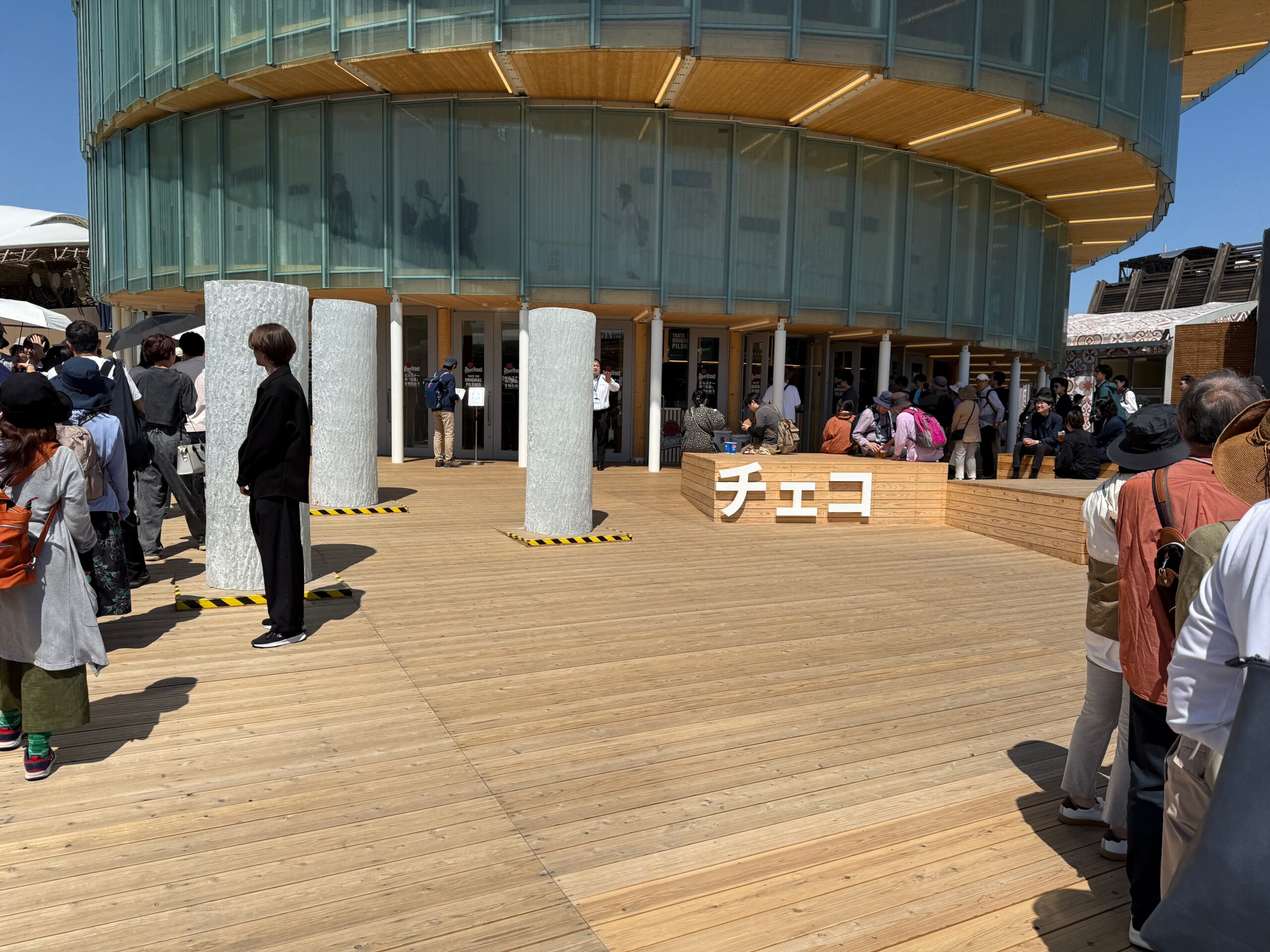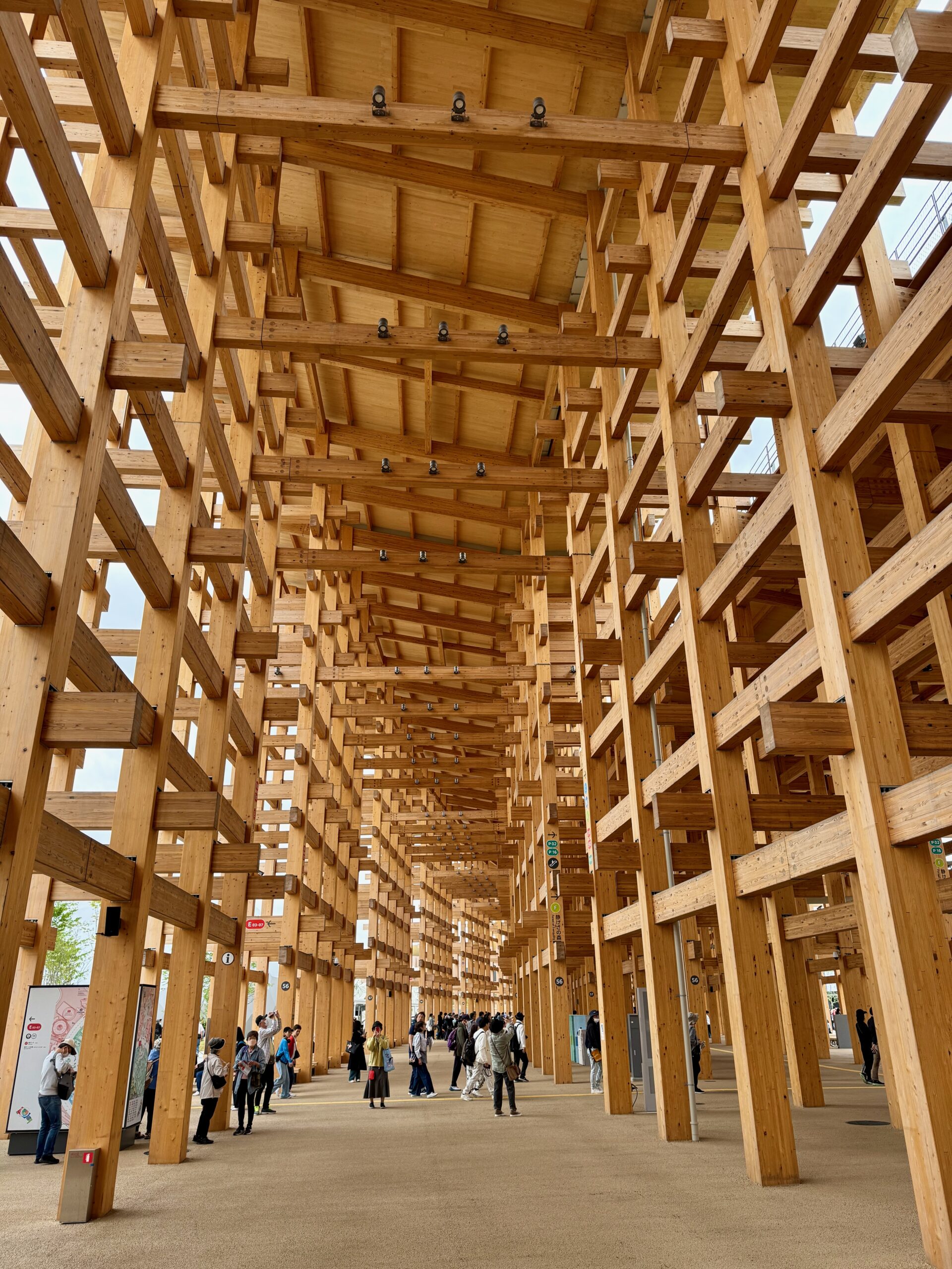 There is a spectacular “ring” that circles the expo; a wooden structure that also provides some shade and seating below.