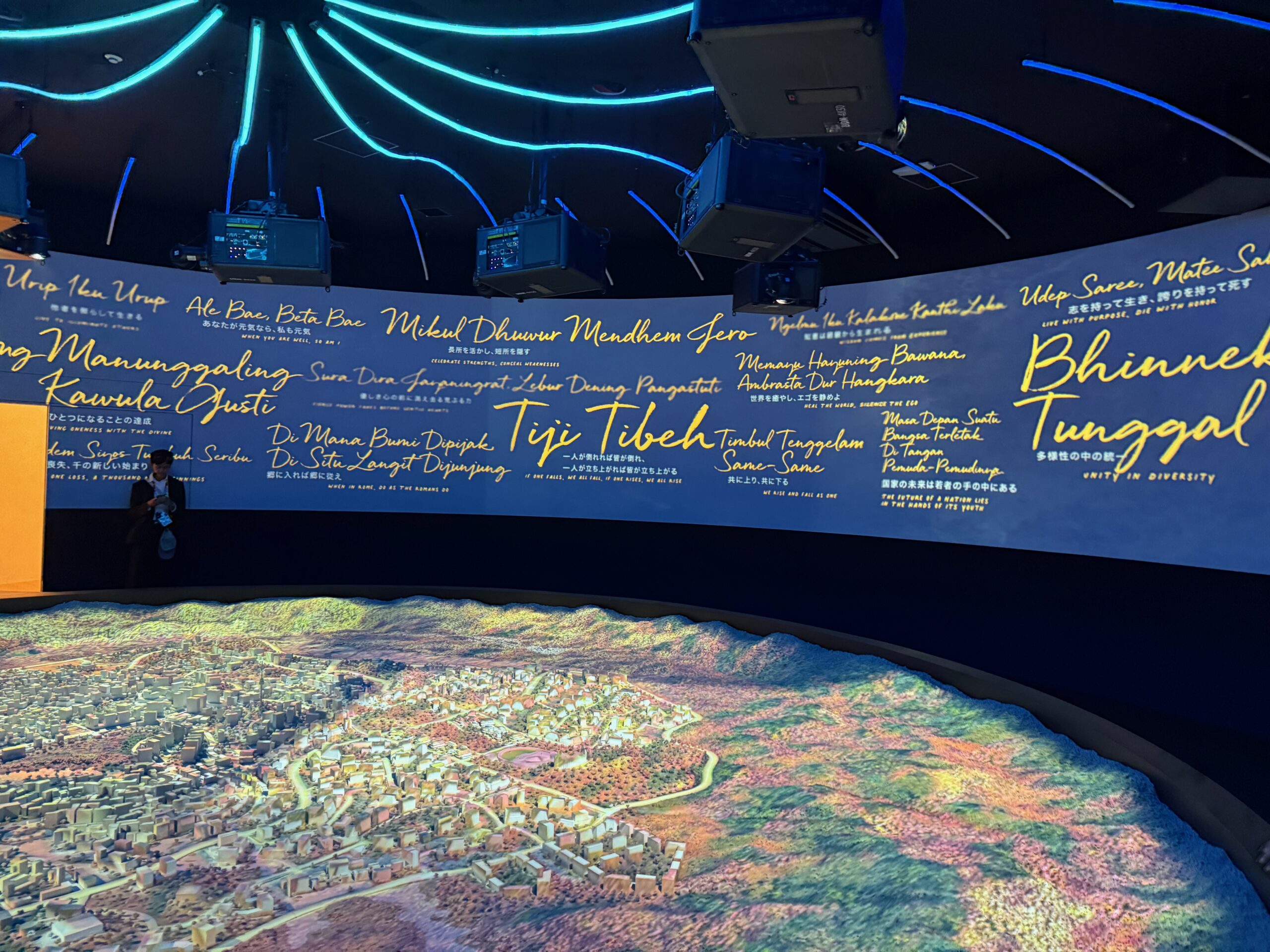 Inside there were projections of Indonesian water, fish, and a 3D map of Indonesian cities, showing their connection with nature and a sustainable future. Sustainability was a bit thing at the expo.