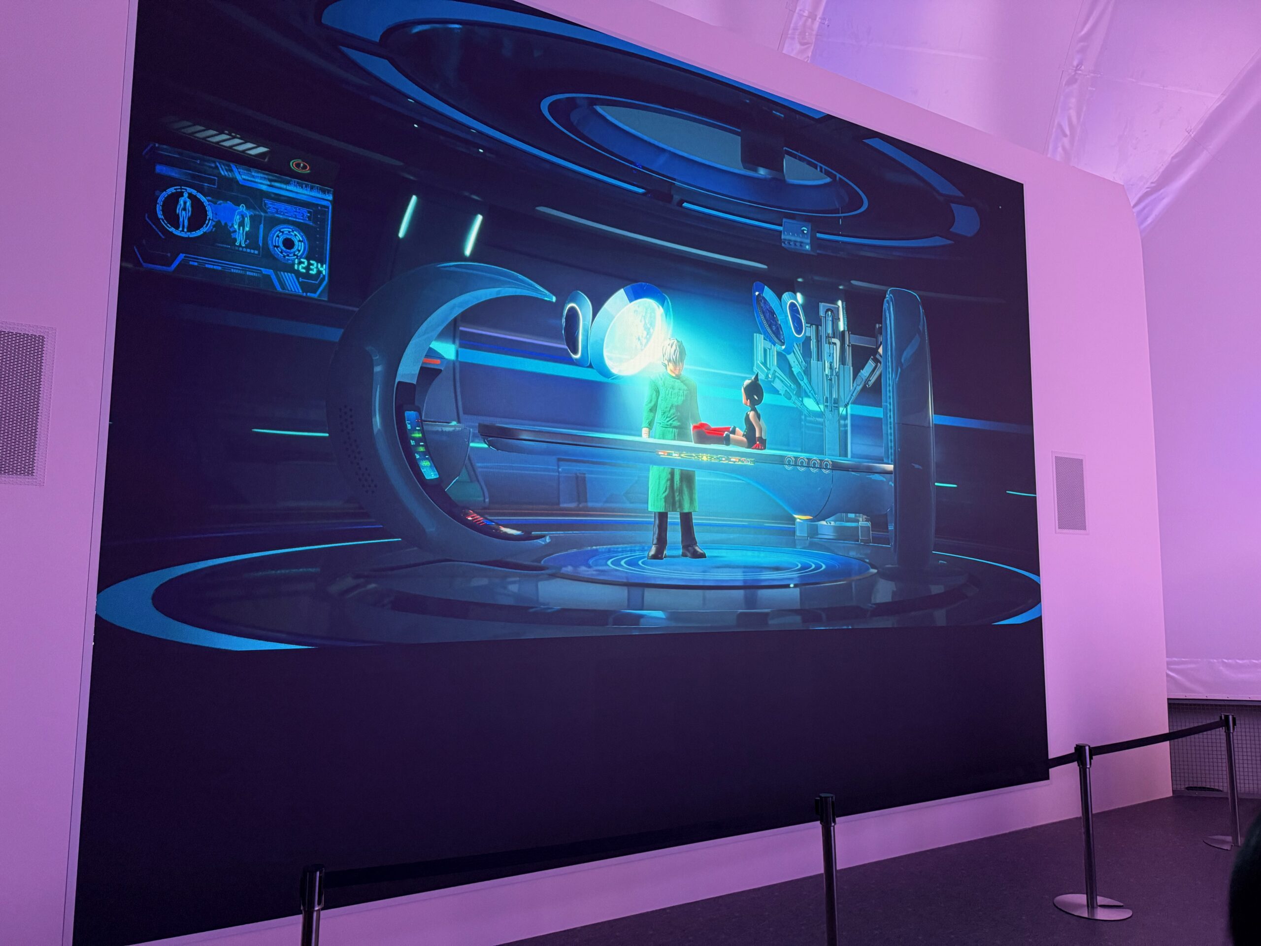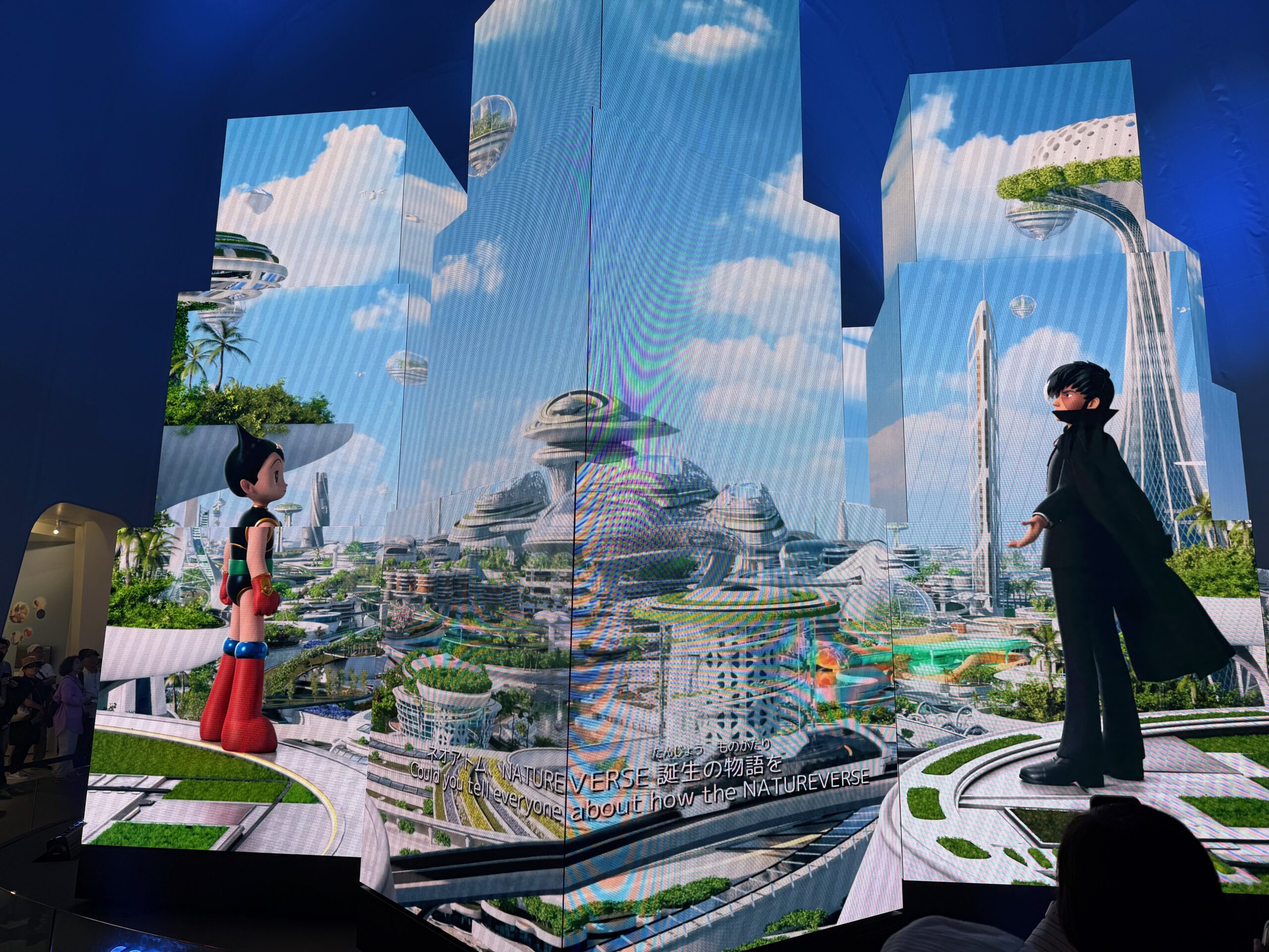 A big part of the exhibit involved Astro Boy (Mighty Atom in Japan). There was a cartoon involving Astro Boy saving the world, but (spoiler) dying.