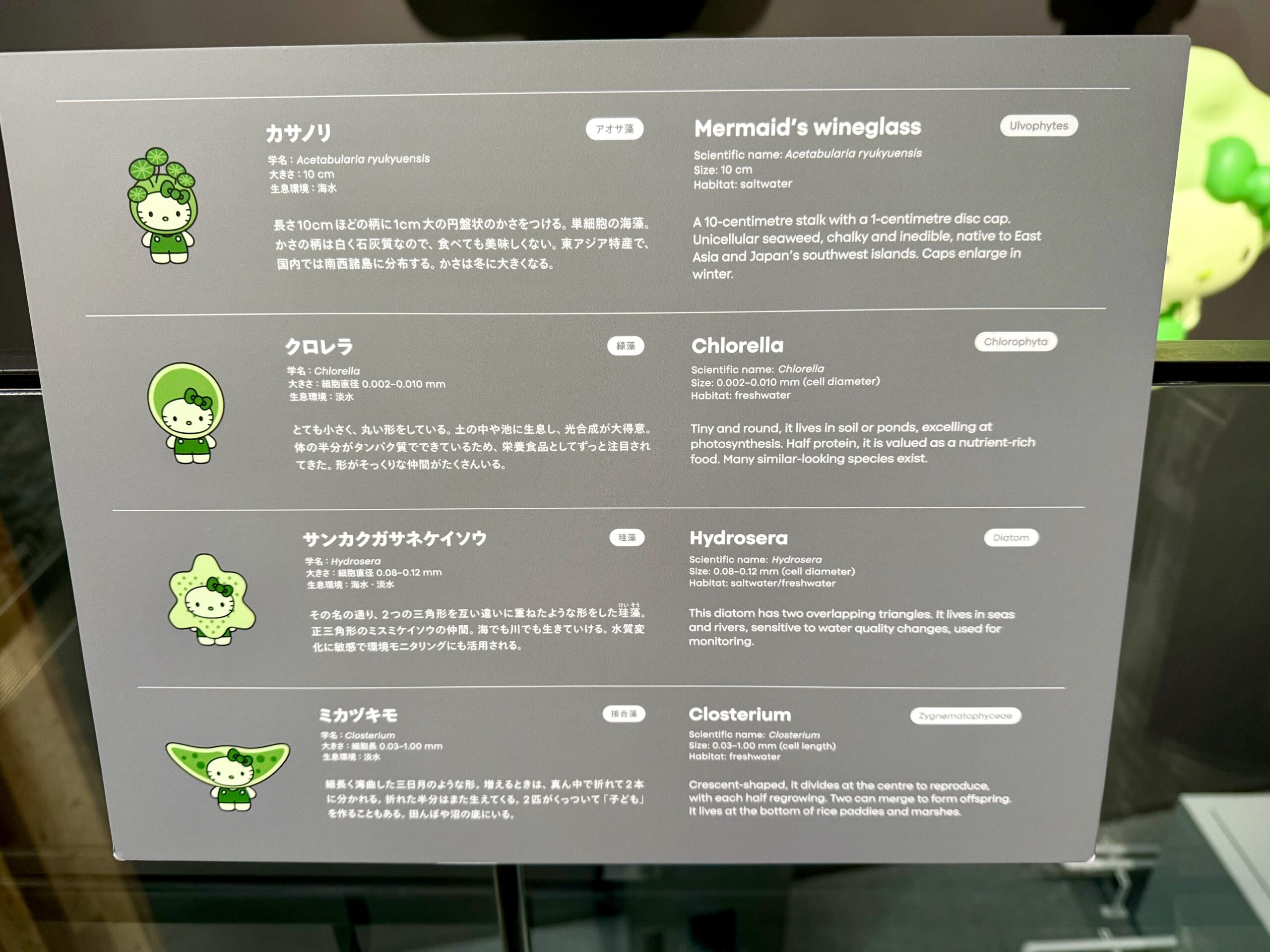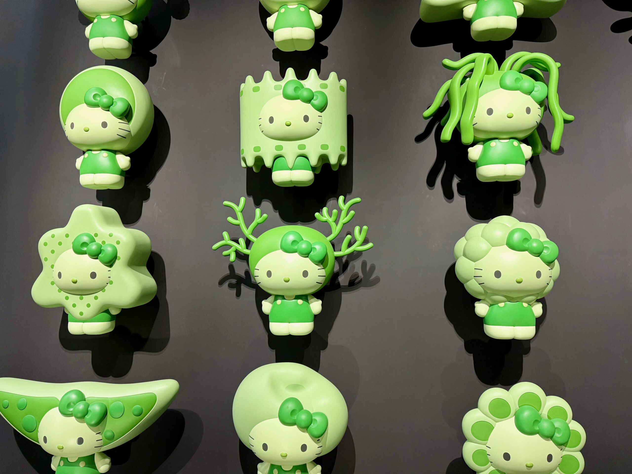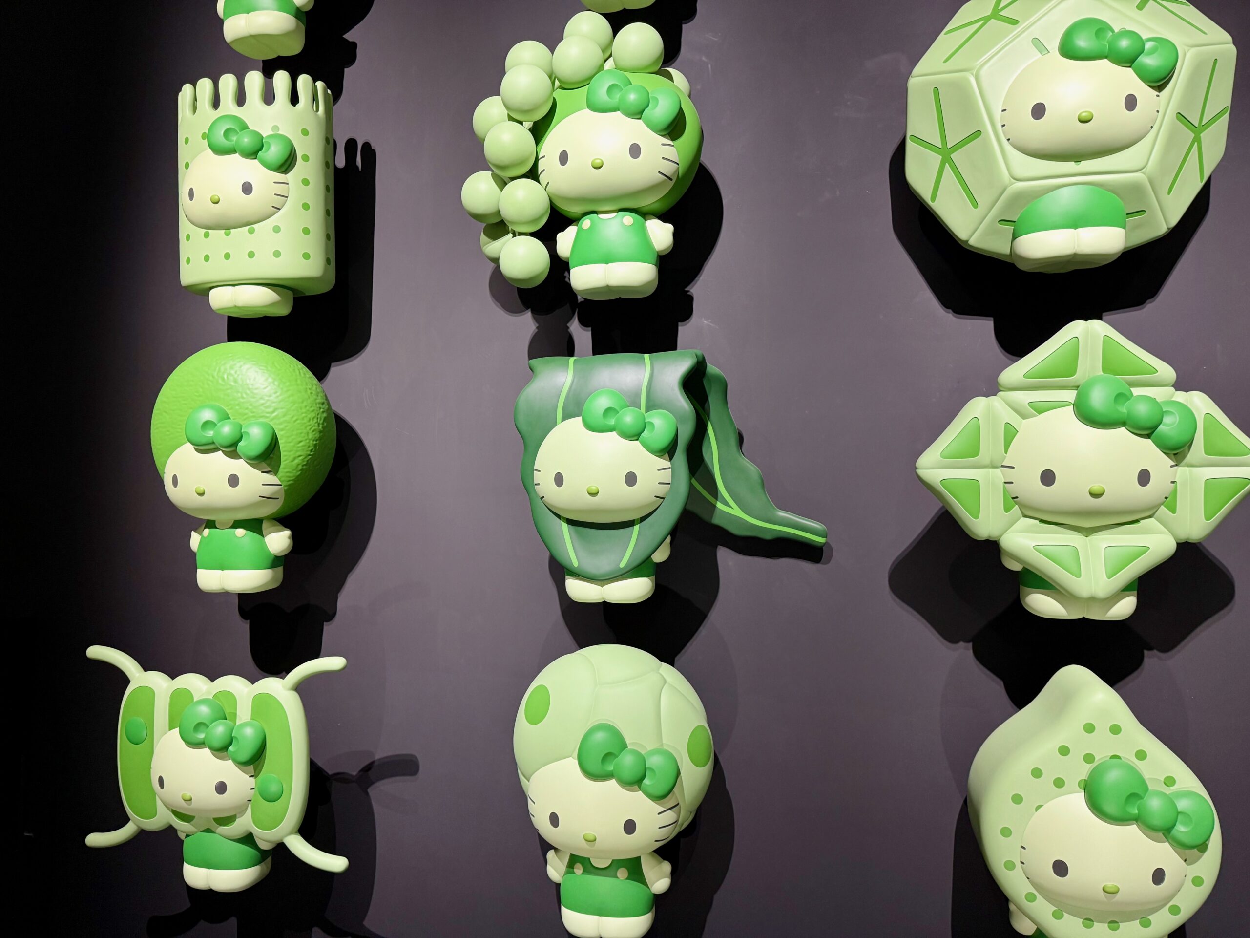 There were these huge, green, Hello Kitty models on the wall. But all a little alien. Can you guess why?